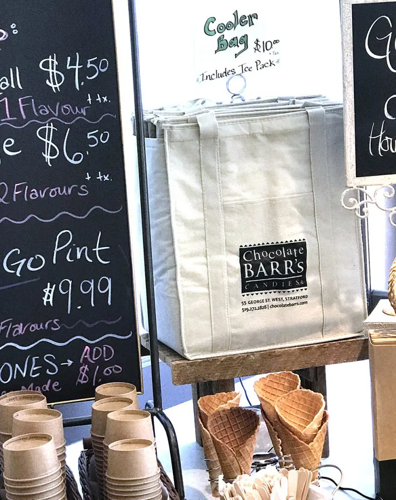 We are already on a first-name basis with Jenn at Jenn & Larry’s Ice Cream Shop, but again, we had never been here as part of the Stratford Chocolate Trail and were happy to receive a little hot fudge sundae with our ticket. We love this retro inspired family-run business and visit regularly! We grab our ice cream cones, dairy free gelato, milkshakes and sundaes and take them down to the Avon river to watch the swans meander by. (Bonus: They also make mini vanilla cones for pooches!)
