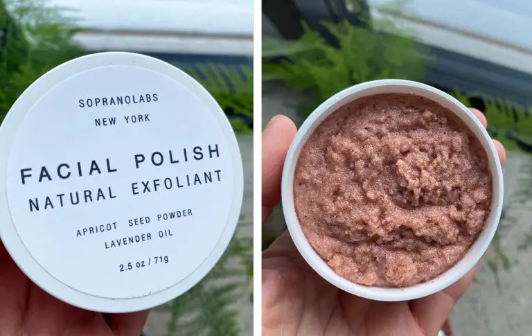 Sopranolabs Lavender Facial Polish is an Emulsified Vegan scrub infused with apricot seed powder, pink French clay and sugar exfoliants. A little goes a long way… I wet my hands and create a paste with the scrub and gently rub it on my face and neck in small circular motions. It’s the perfect way remove the dull top layer of skin and reveal the fresher skin underneath which is essential to prepping your skin to evenly absorb makeup and prevent you from looking like you’re wearing a mask!