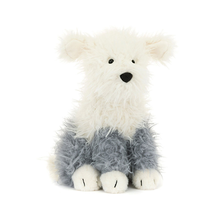 Ewert Sheepdog is here to play, round up joy, and share cuddles! In long, textured cream and grey fur with bright eyes and long tail, Ewert has stitched paw detail and a big, boopable black suedette nose. The perfect gift for dog lovers of all ages!