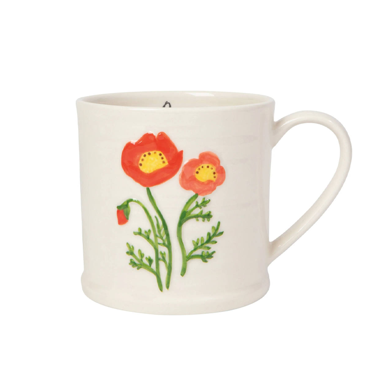 Adorned with a delicate botanical design, the embossed floral Poppy mug evokes the cozy feeling of sipping coffee in a romantic cottage garden or taking evening tea on the porch.