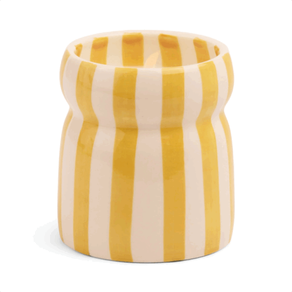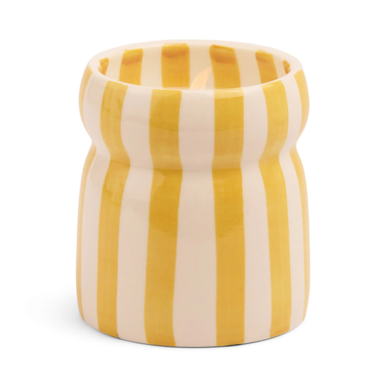 Transport yourself to the world’s most beautiful beaches with the Cabana collection, each designed to evoke the soothing, transformative scents of coastal destinations. These hand painted candles inspired by striped umbrellas are 6.5oz and feature a unique pinched form.