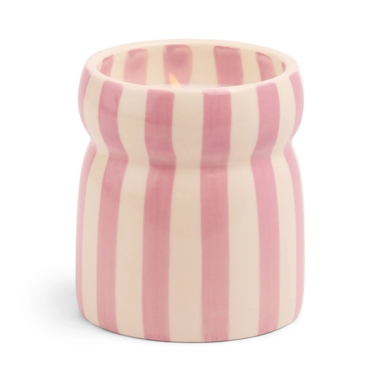 Transport yourself to the world’s most beautiful beaches with the Cabana collection, each designed to evoke the soothing, transformative scents of coastal destinations. These hand painted candles inspired by striped umbrellas are 6.5oz and feature a unique pinched form.