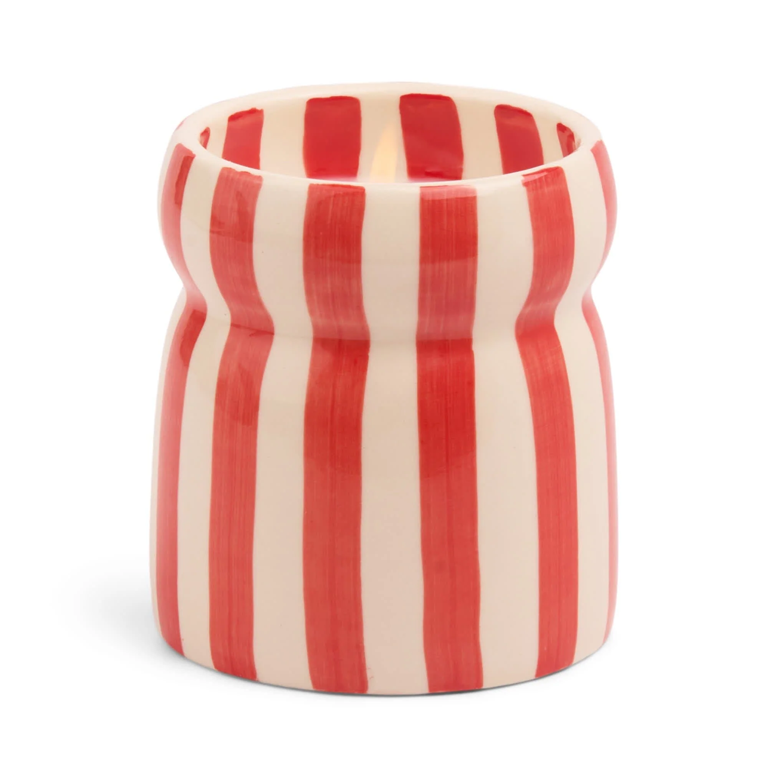 Transport yourself to the world’s most beautiful beaches with the Cabana collection, each designed to evoke the soothing, transformative scents of coastal destinations. These hand painted candles inspired by striped umbrellas are 6.5oz and feature a unique pinched form.