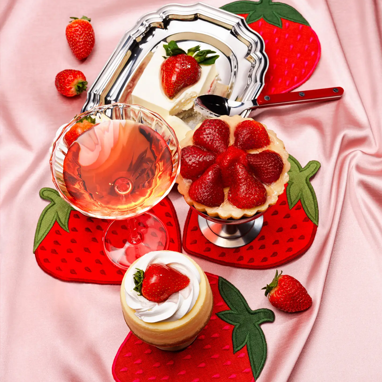 A juicy little detail for your next soirée. This set of four whimsical strawberry-shaped cocktail napkins is made from 100% linen and embroidered with sweet detail—perfect for brunch, bridal showers, or gifting everyone’s favourite fruit. Comes in picture-perfect packaging.