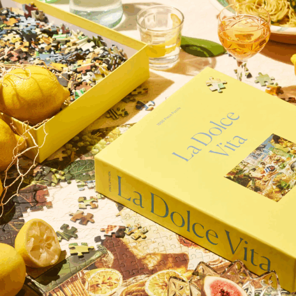 La Dolce Vita — Italian for “the sweet life” — is a 1000-piece jigsaw puzzle so transportive you might as well be overlooking the Tyrrhenian Sea. Limoncello, pasta, and crumbly, salty parm: take part in a scene of pure pleasure and indulgence.