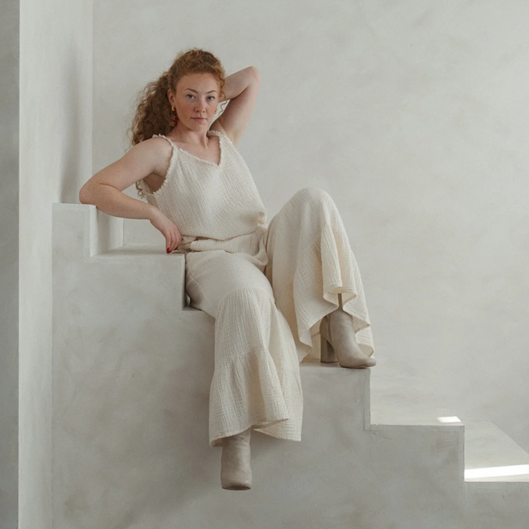 The crinkled texture offers a vintage-distressed appearance while ensuring an easy-care, no-fuss wear that’s perfect for travel. Made from natural materials each pair may vary slightly in shade, adding to its unique charm. The neutral colours make these pants effortlessly versatile, allowing them to pair with anything in your wardrobe. The breathable, lightweight Turkish muslin cotton is soft against the skin, and their wide leg, relaxed fit means they flow beautifully with every step.