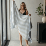With summer hues and a classic awning striped design, the Boardwalk Towel has us thinking of fun days at the beach, sunsets on the lake and BBQ’s with friends.