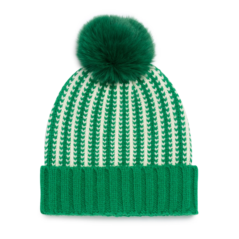 Brighten up your cold-weather look with the Hadley Beanie, featuring bold colours, a chunky knit design, and a plush faux fur pom on top. This beanie has a wide ribbed cuff for a snug fit and a cozy feel that’ll keep you toasty from snowy strolls to coffee runs. The playful houndstooth pattern brings just the right amount of charm and character.