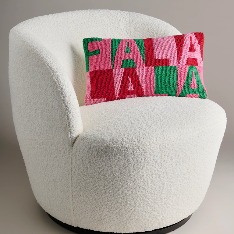 Deck the halls with bold holiday style using the “Fa La La” Tufted Pillow. Featuring oversized block lettering in a cheerful palette of pink, red, and green, this pillow brings instant festive flair to any space. Its rectangular silhouette makes it a perfect accent for sofas, beds, or entryway benches. Designed with a removable polyfill insert, it’s as practical as it is merry.