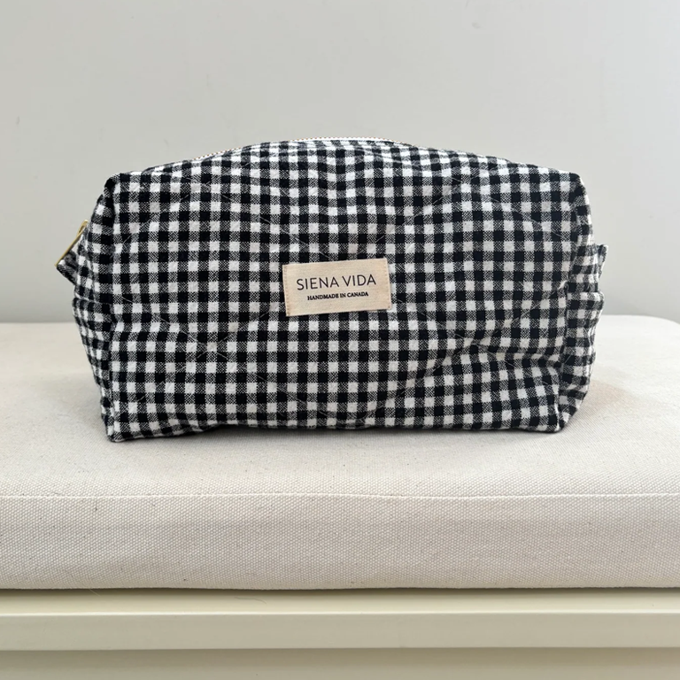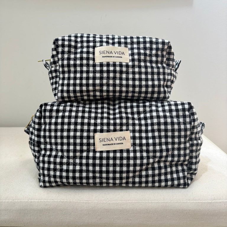 The perfect blend of style and function. Crafted from super soft and sustainable Organic Cotton, this pouch is ideal for organizing your makeup, toiletries, and everyday essentials. All self-care pouches are handmade in Toronto, Canada and a tree is planted with every order.  The fabric for the pouch is sourced from Vancouver and our YKK gold zippers are manufactured in Montreal.