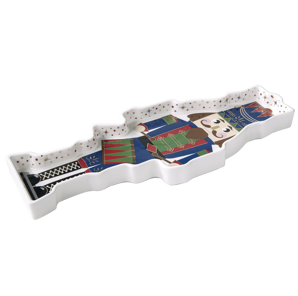Marching to the beat of his own drum! This adorable porcelain platter features a vibrant design adorned with playful colours and elegant golden accents, perfect for adding festive charm to any table. Packaged in a stylish gift box, this white, red, and multicoloured platter brings joy and sophistication to your gatherings while making serving appetizers or treats a delight this holiday season.