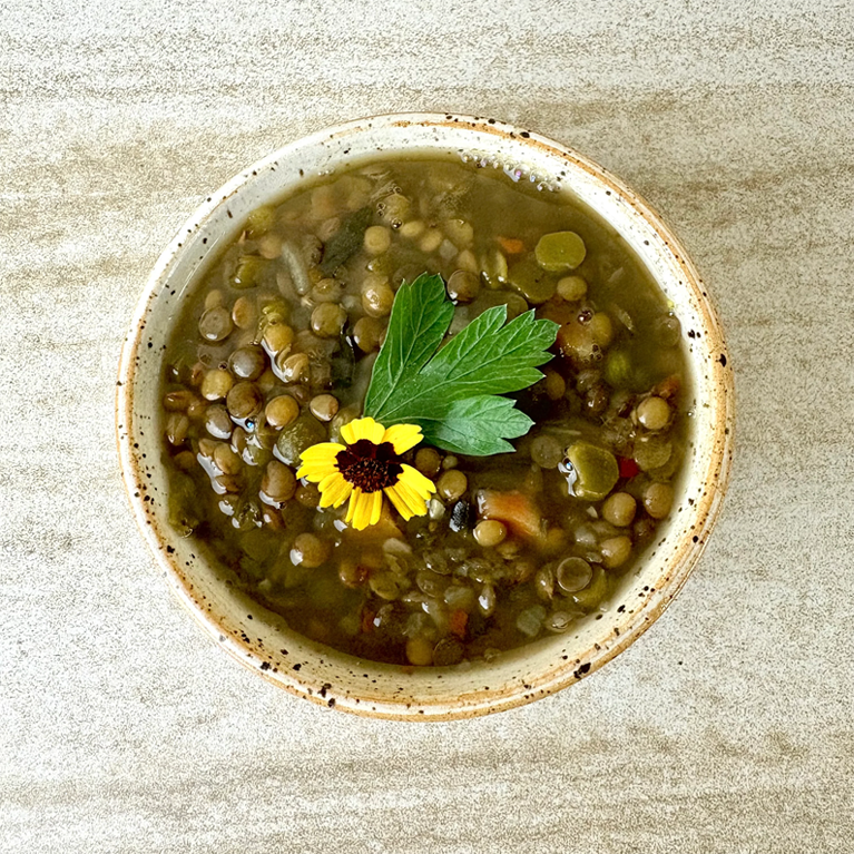 Like gathering supper straight from the garden, this nourishing blend brings together the fresh vibrancy of green split peas, lentils, and farm vegetables with fragrant holy basil and sage grown in our own herb gardens.