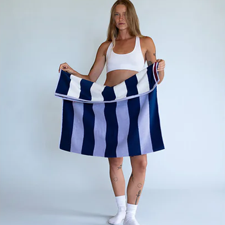 Typical Bath Towel – Offset Stripe Studio Navy, Lilac and Workshop White