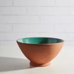 Terracotta speaks of the earth but these glazed interiors bring a bright splash of color. Moroccan artisans learn their skill through the generations of practice and skill as they hand-throw these sturdy vessels, dry them in the sun, then glaze for a rich finish to show off fruits, salads or anything else you would like to bring to the table.